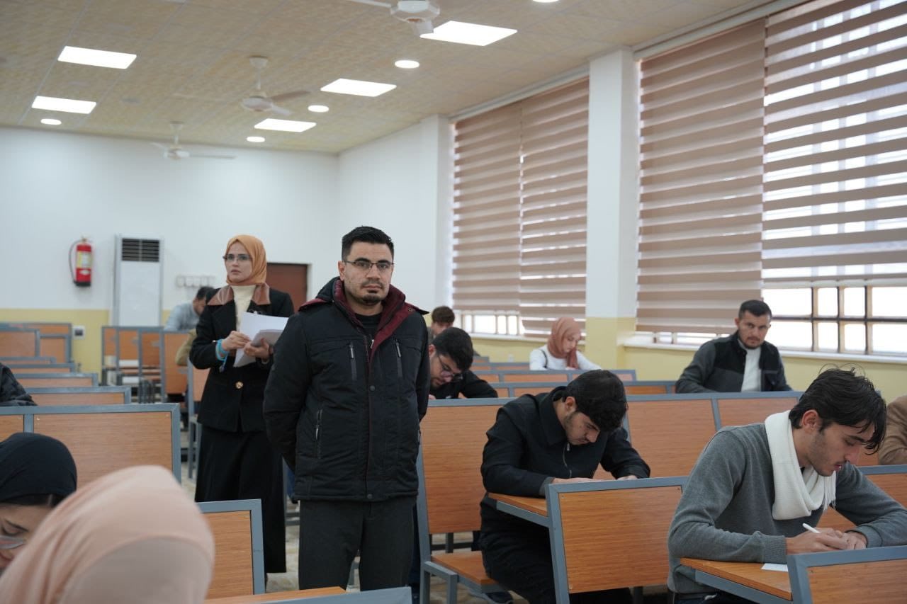 وأكد السيد العميد أن الامتحان التقويمي يمثل أداة مهمة في تقييم مخرجات العملية التعليمية ورفع مستوى الأداء الأكاديمي، مثمنًا في الوقت نفسه الجهود المبذولة من قبل الملاكات التدريسية والإدارية في إنجاح الامتحان.