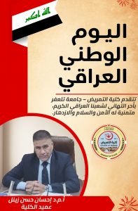 تتقدم كلية التمريض – جامعة تلعفر، ممثلةً بعميدها الأستاذ المساعد الدكتور إحسان حسن زينل، بأحر التهاني والتبريكات إلى شعبنا العراقي الكريم.