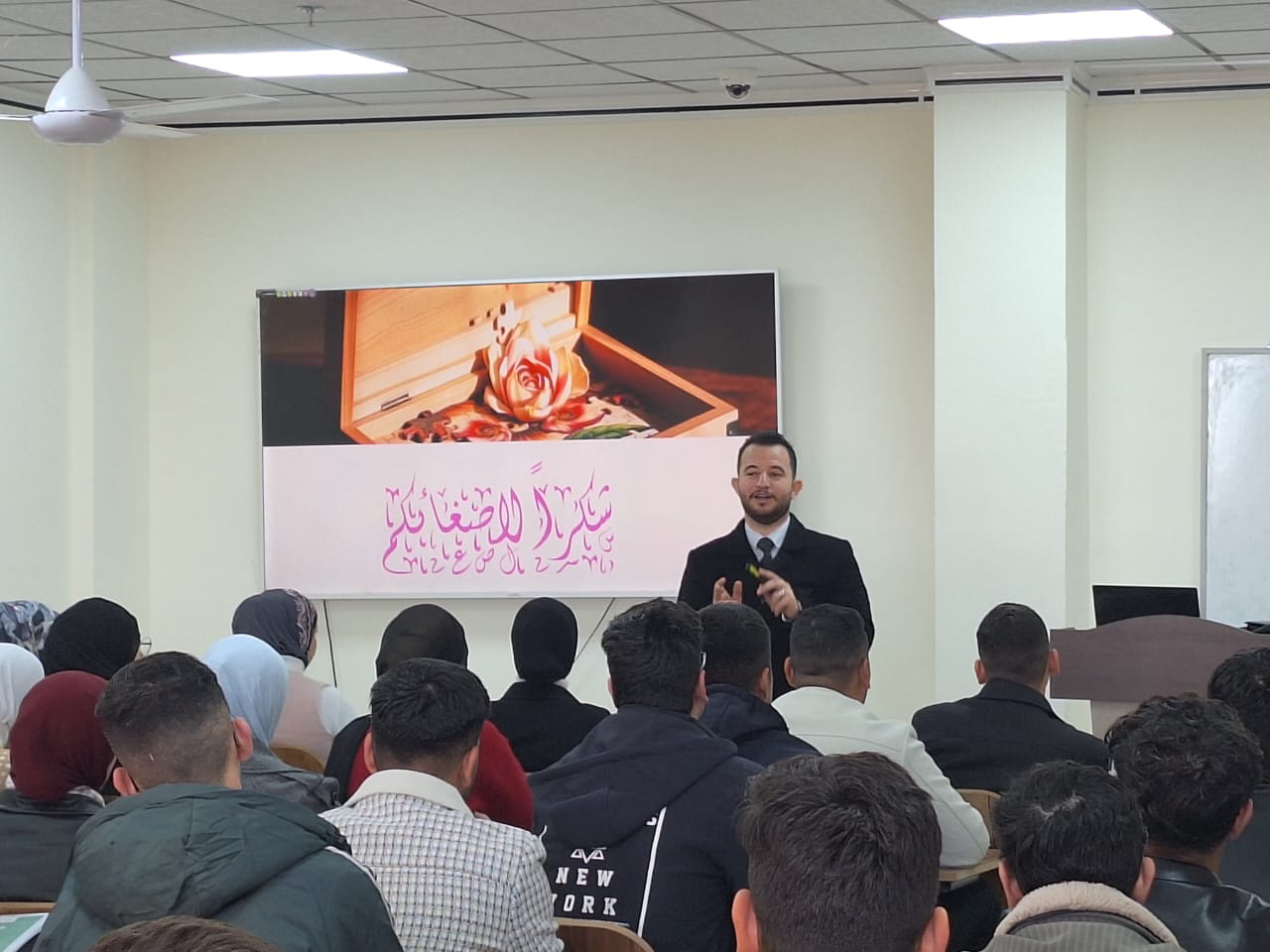 وأكدت المحاضرة على دور الطلبة وأعضاء الهيئة التدريسية في توفير بيئة تعليمية منظمة وفاعلة، بما يسهم في الارتقاء بالمستوى العلمي والأخلاقي لطلبة الكلية.